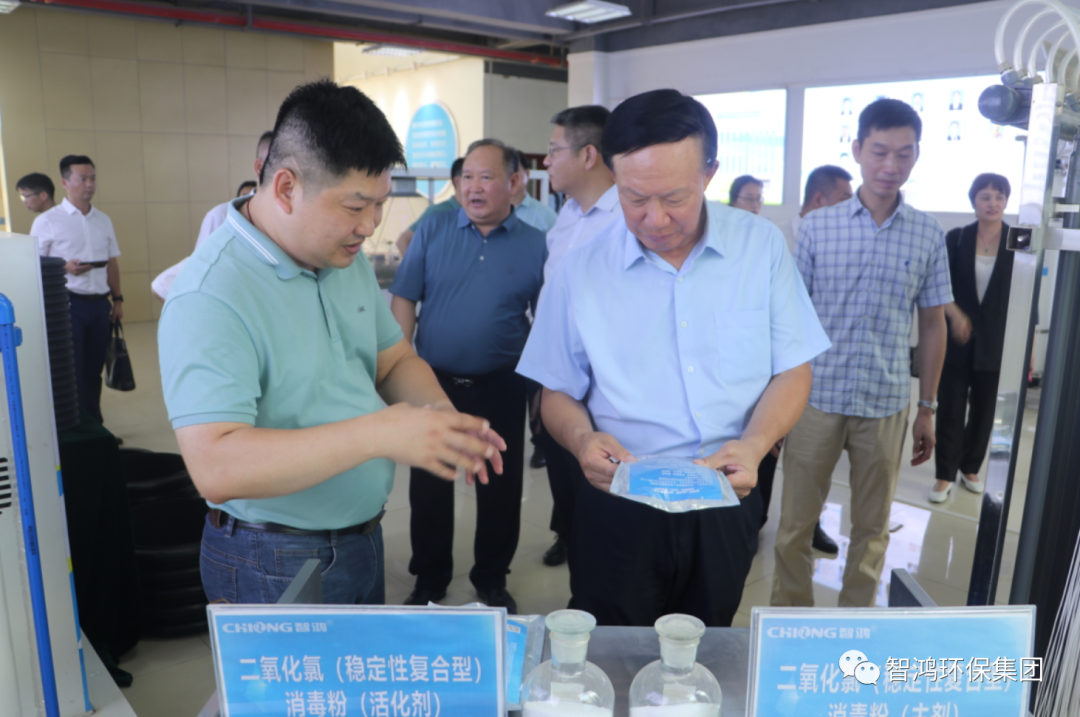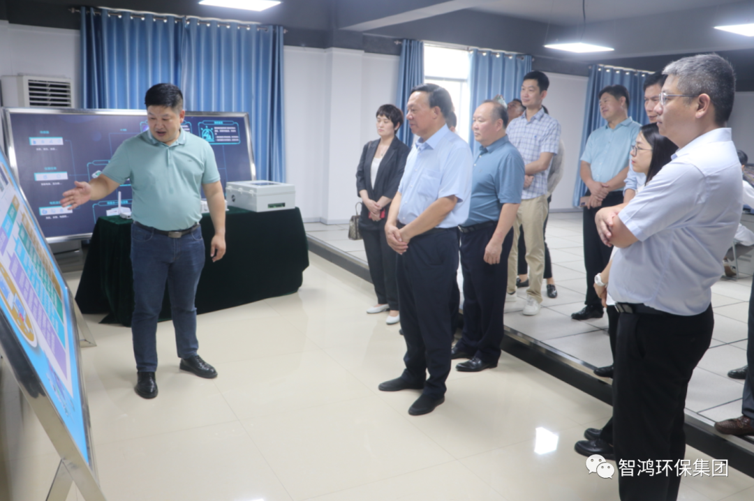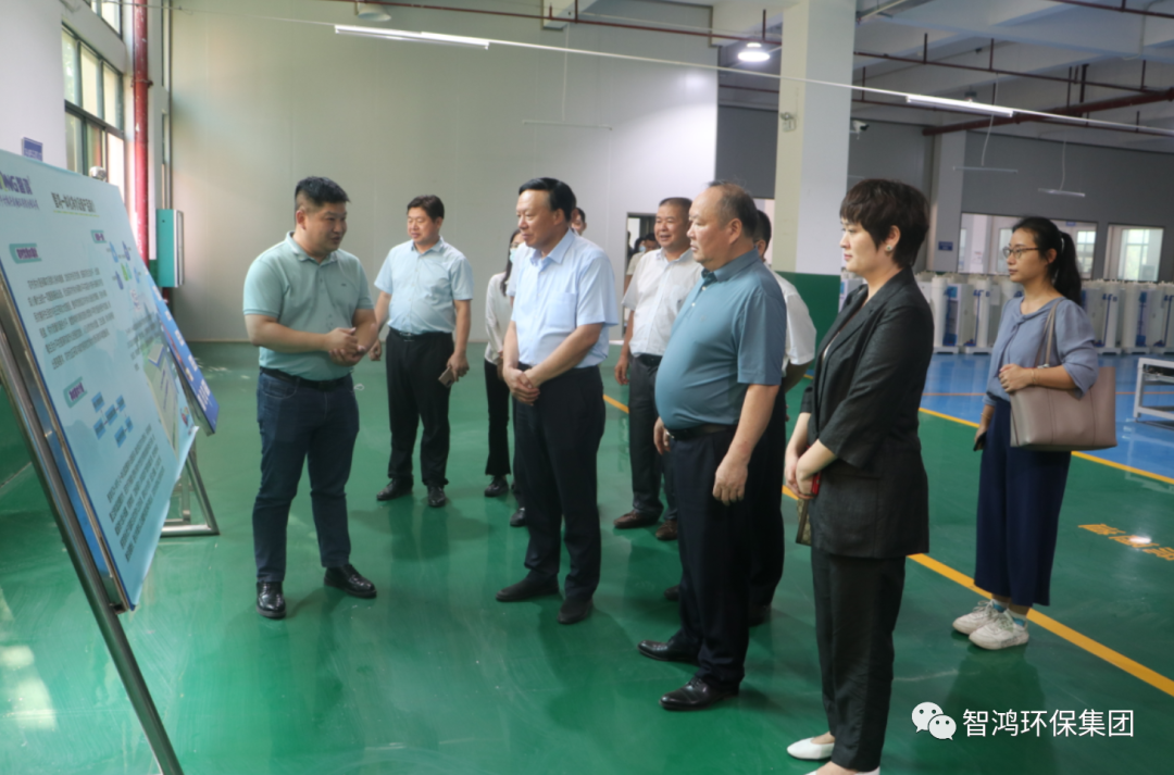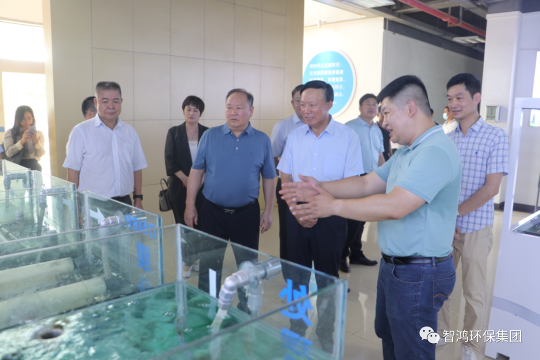 郭承站一行先后到智鸿环保集团净水设备和膜生产线标准厂房、党建形象墙、产品展厅、智慧水务中心及综合实验室等进行调研,实地了解企业产品研发、生产经营以及技术成果转化应用等有关情况。